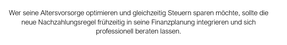 Voraussetzung ist, dass im Nachzahlungsjahr weiterhin ein AHV-pflichtiges Einkommen erzielt wird. Zudem muss zuerst der reguläre Maximalbetrag des laufenden Jahresvollständig einbezahlt sein, bevor eine Nachzahlung vorgenommen werden darf.